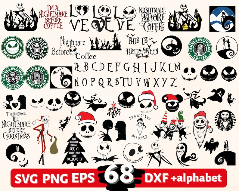 68 nightmare before christmas cut designs and alphabet SVG Cut file for cricut is here to help you bring your creative ideas to life! With our easy-to-use SVG files, you can create beautiful, unique designs in no time. Whether you are making cards, banners, t-shirts, or anything else, our 68 nightmare before christmas cut designs and alphabet SVG Cut file for cricut will help make your projects shine brighter than ever.