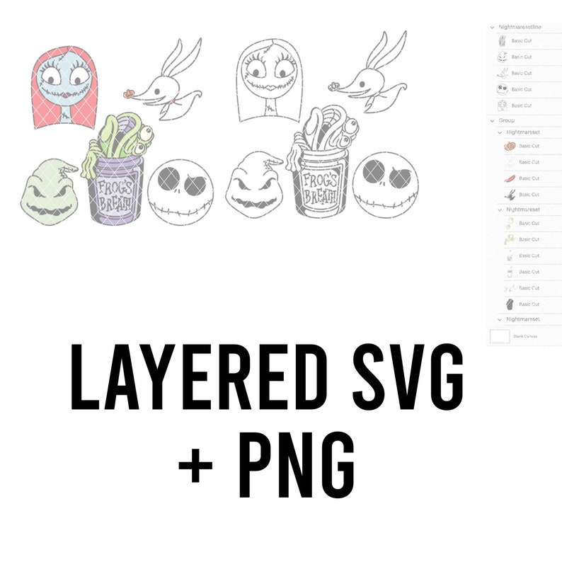Make your projects shine with Nightmare Skellington SET SVG Layered By Colour + PNG! Our digital download design is the perfect way to create stunning visuals for any project. Our Nightmare Skellington SET SVG Layered By Colour + PNG is perfect for t-shirt design, scrapbooking, photo albums, card making, coffee mug designs, prints, and anything you want to cut with your Cricut and Silhouette. We offers the perfect high-resolution artwork for all your creative needs. With a few simple clicks, you can easily bring life to any project with our beautiful designs. Download now and get creating!